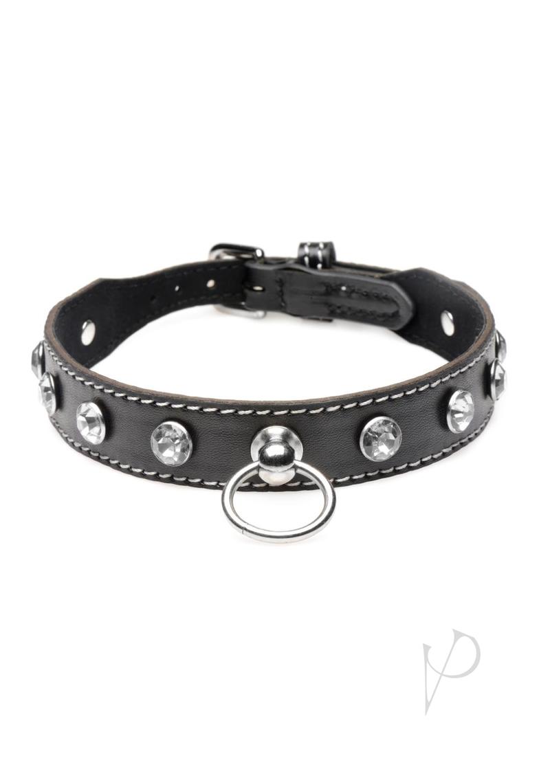 Attract the attention you deserve with this rhinestone choker! The dazzling rhinestones catch the light as you catch your partner’s eye. Wear it as an accessory or as a statement! This submissive collar has a nickel-free O-ring attached at the center so you or your partner can attach a leash; let them walk you around as you proudly strut your stuff, or let them pull at the O-ring as they pull you into an embrace, a kiss or down to do devious and naughty deeds!